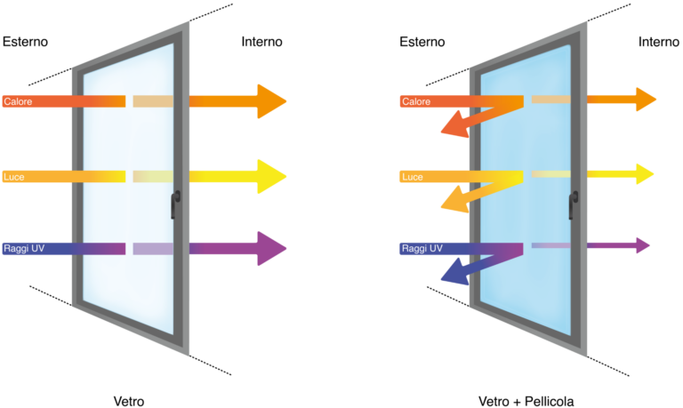 Qui sotto descriviamo cosa succede in una stanza con finestre ed in una stanza con finestre con pellicole.